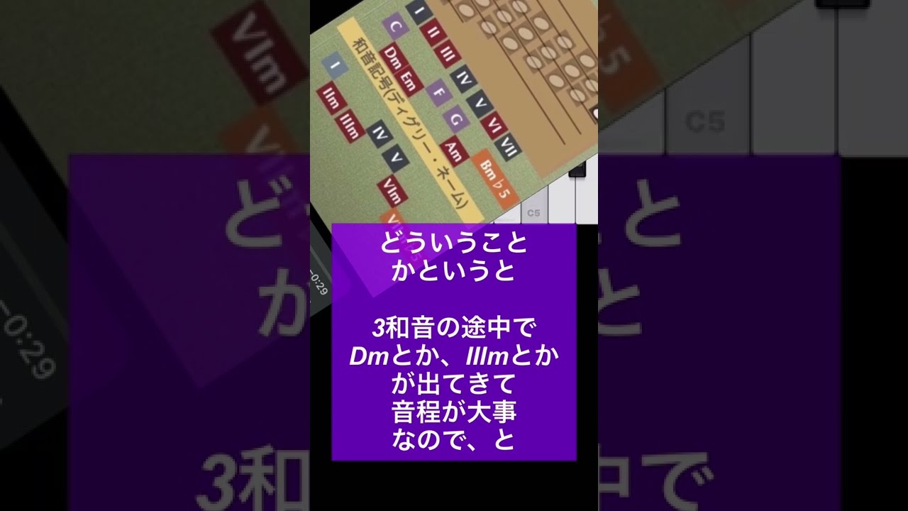 どういうことかと いうと、3和音の途中で Dmとか、IIImとか が出てきて 音程が大事と。 そこで、ちょっと時期尚早なれど、 まとめてみました