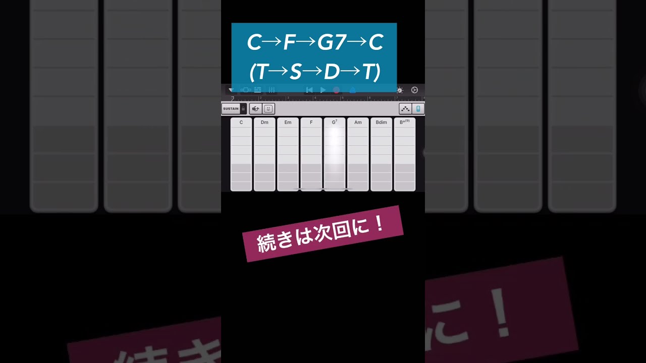(4) (動画の後半部には+追加で) GarageBandで、以下の4つを簡単に続けて弾きました。 1. F→G7(IV→V)、 2. C-F-C(I→IV→I) 3. C-G7-C (I→V→I) 4. C→F→G7→C (I→IV→V→I) 以上です