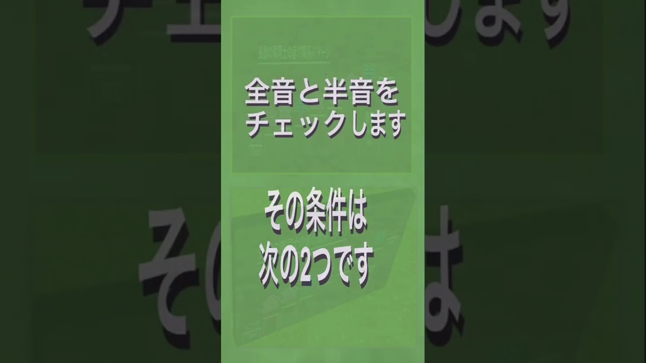 (ポイントは2つ) 音程の「全音」と「半音」の組み合わせで 「全・全・半・全・全・全・半 」 (補足: 今回の動画では省略 〜 前回動画などをご覧ください) (a)1オクターヴを12等分したものを「半音」といい、その「半音x2」を「全音」でした (b)1オクターブの音階は、半音ずつ区切ると、全部で 12音階(白鍵、黒鍵あわせて)で 「(ドからはじめて)全・全・半・全・全・全・半」となります (5) (ポイント2) 「導音(リーディング・トーン、leading tone)」です その音階の「7番目の音(VII)」で「トニック(T)に対して『半音下から上がる」という特徴があり 「主音(トニック)に進もうとする特性がある」と言われてます (6) ということで、「シャープ(♯)やフラット(♭)」が付いていくいろいろな メジャー・スケールの1つ目は 「Gメジャー・スケール」です。イメージとしては、「Cメジャー・スケール」のトニック(T)であった 「ド(I)」の音を・・・完全5度上にあげていって「シャープ(♯)」をつけ・・・完全5度下にさげていって「フラット(♭)」という感じかな?