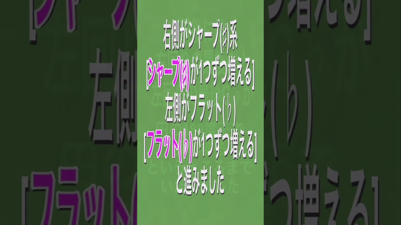 (動画の内容 - 長調から短調へ) 少し間があきましたが、前回はいろいろな長調ということで「シャープ(♯)とフラット(♭)」のついたものについて (1)なお この短調シリーズの動画では特に言及している場合を 除き「移動ド」で進めます (2) 円の頂点を「Cメジャー・スケール」なので「C」 (3)そこを起点としてそれぞれ完全五度ずつ上がって右回りと (4) Cから完全五度ずつ下がって左回りと展開して (5) 右側がシャープ(♯)系(シャープ(♯)が1つずつ増える) 左側がフラット(♭)(フラット(♭)が1つずつ増える)と進みました (6) 最後には、右回りの最後F♯と左回りの最後G♭が円の180度下で調和するというところまで いたしました (7)これは 『5度圏(図)』と呼ばれるもので円の外側は長調に該当するものです (8) これは「五度圏(図)」と呼ばれるもので円の外周は長調に該当します (9) これから進むのは「短調」で この『五度圏(図)』のいわば空間の内側に(円の内周に)存在しています この動画シリーズでは「五度圏(図)」もしくは「5度圏」と表示します (今回はGarageBandで音階の弾きはございません) 続きは次回です! (BGMはVLLO標準のものです) #Shorts