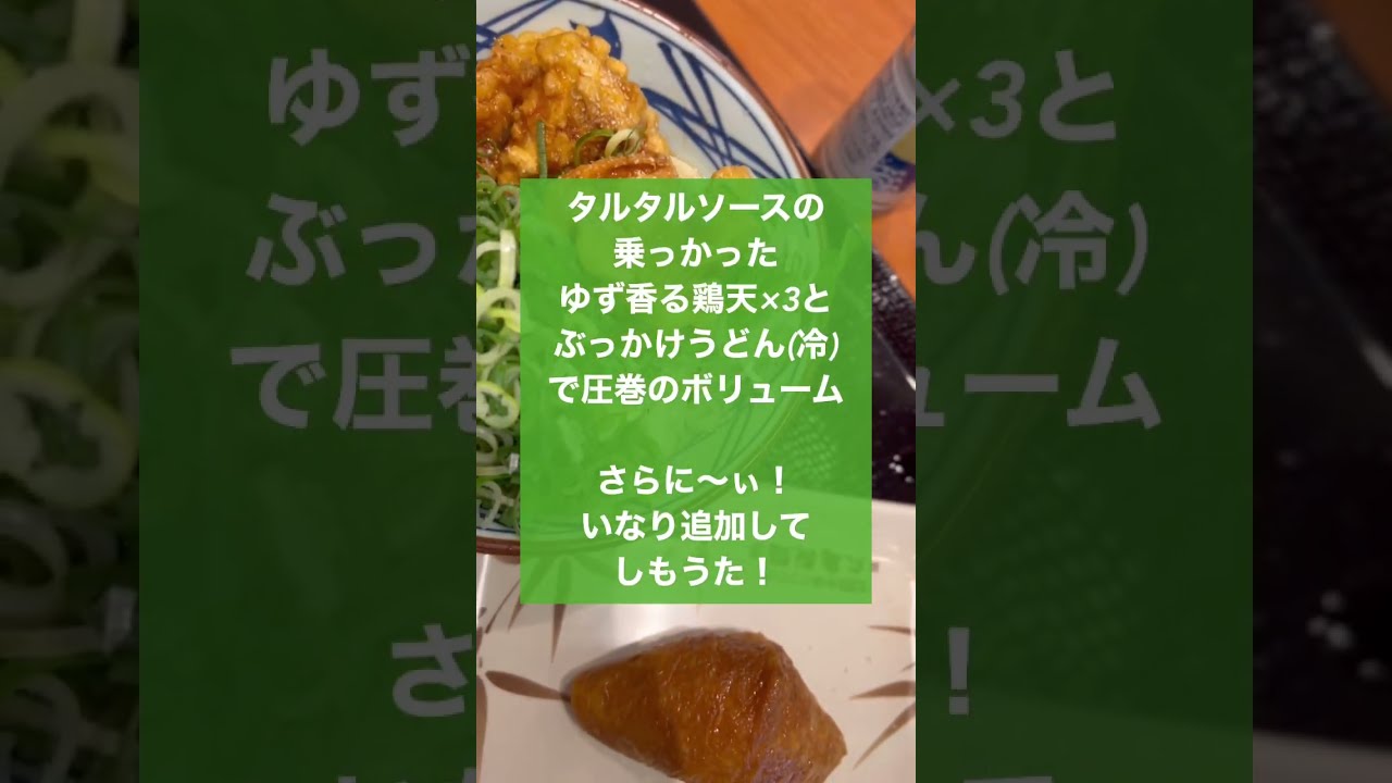 「タルタルソースの乗っかった ゆず香る鶏天×3と ぶっかけうどん(冷)」 で 圧巻のボリューム さらに〜ぃ!いなり追加してしもうた! (鶏天の数は3を選択)。おっ、美味しい〜! ( もう、うっ、うごけませぬ! ) もう1つ (香り際立つ)特製合わせラー油をかけた 辛タル鶏天ぶっかけうどん」 もあったが・・・が今回はこちらをチョイス! 「期間限定 8/30〜10月下旬予定」 (お持ち帰りが可能らしい、ただし容器代は別途必要)。